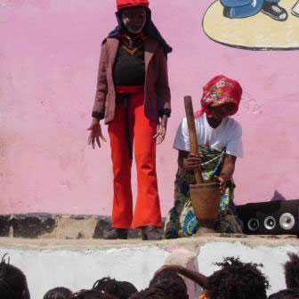 Equal opportunity and equal value are accorded to both the boys and the girls. Moreover the children are prepared to manage some everyday problems of life in the compound, particularly by acting out cameo dramas. In one of these a father refuses to allow his growing daughter to continue at school – until the police intervene. In another a young couple insist on their right to marry against their parents’ wishes.